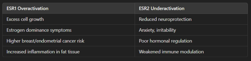 If ESR1 is overactive and ESR2 underactive, you may feel the effects of even small estrogen shifts more strongly—physically and emotionally. Genetic testing, lifestyle strategies, and targeted nutrition can help rebalance the response, reduce symptoms, and promote long-term hormonal resilience.