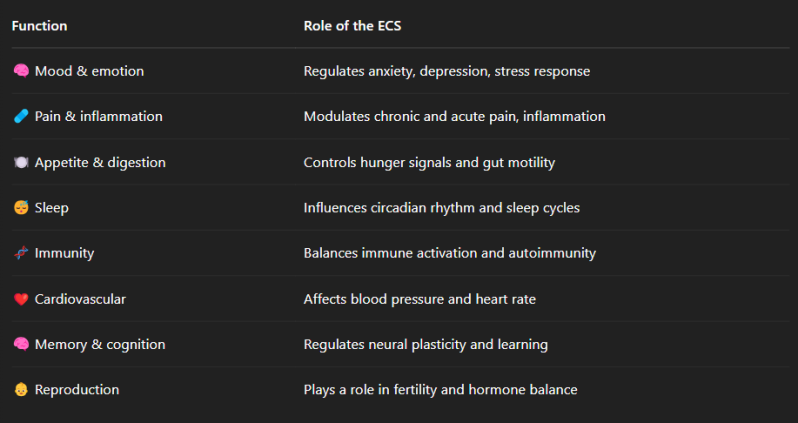Other compounds like CBG, CBC, and THCV also interact with the ECS in more subtle or specific ways.