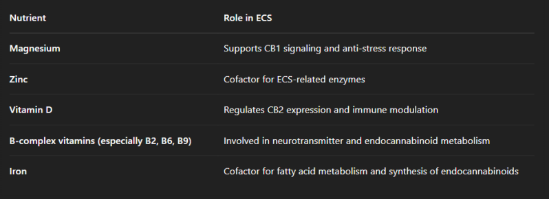 The enzymes that make and break down endocannabinoids need vitamins and minerals to function properly.