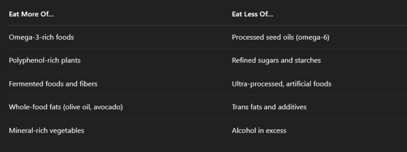 A diet rich in omega-3s, polyphenols, prebiotic fiber, minerals, and fermented foods helps your ECS stay strong and adaptable — while modern ultra-processed diets can throw it off balance.